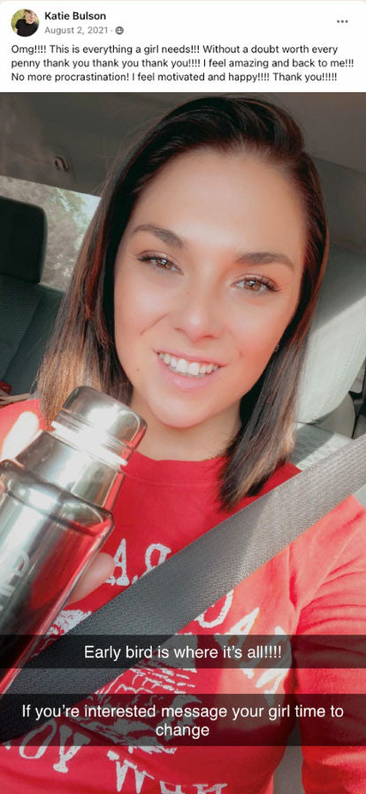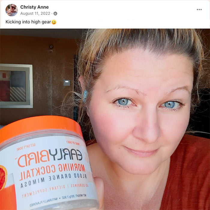 I'm a 35 year old mom who works 2 full time jobs. Getting started in the morning and being able to focus at work is sometimes a struggle no matter how much sleep I’ve gotten. Early Bird gives me that boost as well as that buckle down and focus help that I need. I love it and have recommended it to everyone on my social media accounts!