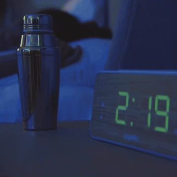 When alarm goes off, shake & drink!